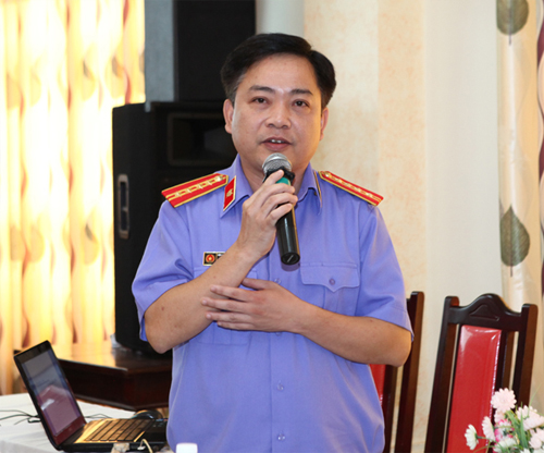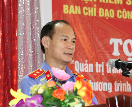 Nhà báo Nguyễn Huy Miện, Phó Trưởng Ban thường trực Ban chỉ đạo công tác tuyên truyền ngành KSND, Tổng Biên tập TCKS phát biểu khai mạc