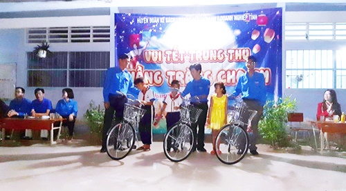 Qua đó đã vận động các đơn vị tặng 140 phần quà (gồm: bánh in, pía, lòng đèn, mỗi phần trị giá 100.000 đồng), 03 chiếc xe đạp, 1.000 quyển tập cho trẻ em nghèo, trẻ em có hoàn cảnh khó khăn, học gỏi để các em có cơ hội được vui chơi, giải trí, tổng kinh phí 26.000.000 đồng.