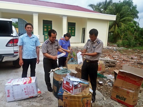 Hội đồng tiêu hủy vật chứng đã họp, kiểm tra tình trạng niêm phong vật chứng, về số lượng, chủng loại được thể hiện trong bản án và tiến hành tiêu hủy vật chứng, tài sản gồm: 5.394 bao thuốc lá hiệu Jet và 2.399 bao thuốc lá hiệu Hero, 01 cây nỏ thủy tinh, 02 biển số xe ô tô, 01 bộ bài tây, với các hình thức: đốt cháy hoàn toàn các tang vật là chất dễ cháy; đập biến dạng làm mất giá trị sử dụng đối với các vật chứng là vật cứng, kim loại.