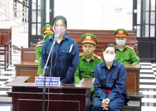Bị cáo Nguyễn Thị Ngọc Q, Nguyễn Thị H tại phiên tòa. Ảnh: Phước Thạnh