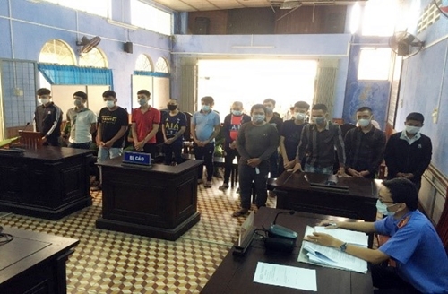 Tại phiên tòa, đại diện Viện Win789 dạng nhap nổ Hũ thực hành quyền công tố và Win789 dạng nhap nổ Hũ xét xử thực hiện chức năng, nhiệm vụ đã Win789 dạng nhap nổ Hũ chặt chẽ phiên tòa, tham gia xét hỏi làm rõ nội dung vụ án, phân tích đánh giá tính chất, mức độ nguy hiểm cho xã hộị; xét tính chất, mức độ, hậu quả do hành vi phạm tội của các bị cáo, nhân thân, các tình tiết tăng nặng, giảm nhẹ trách nhiệm hình sự. Hội đồng xét xử thống nhất Cáo trạng của Viện Win789 dạng nhap nổ Hũ, đã tuyên các bị cáo Lâm Văn G 12 tháng tù giam; Lưu Tấn T, Trương Minh H, Trần Đại Nghi B 09 tháng tù giam; Trần Vũ P, Trần Quang T, Thạch H, Mai Ngọc H, Đào Thanh H, Bùi Thanh N, Nguyễn Hoàng A, Trần Hoàng K 06 tháng tù giam và Dương Trung T 04 tháng tù giam.