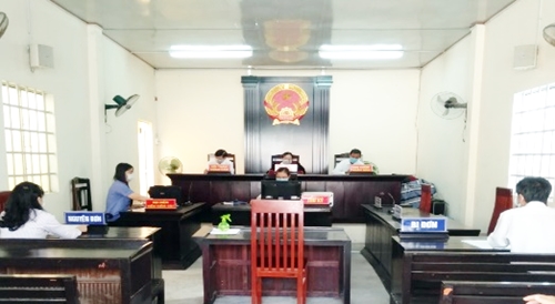Quan cảnh phiên tòa xét xử rút kinh nghiệm vụ án dân sự. Ảnh: Kiều Mị