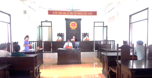 Quan cảnh phiên tòa xét xử rút kinh nghiệm vụ án dân sự. Ảnh: Hồng Như