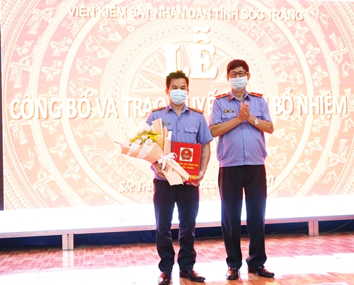 Tại buổi lễ đồng chí Nguyễn Văn Sáu - Trưởng phòng tổ chức cán bộ 789Win666 trang chủ chính thức tỉnh Sóc Trăng đã triển khai và công bố các Quyết định của Viện trưởng 789Win666 trang chủ chính thức tỉnh Sóc Trăng về việc bổ nhiệm chức danh Kiểm tra viên cho 05 đồng chí: Tăng Bình Tánh (Văn phòng), Trần Thị Bé Duyên (Thanh tra – Khiếu tố), Lê Thị Bội Bội (Phòng 10), Trần Thanh Nam (Viện KSND huyện Cù Lao Dung), Nguyễn Văn Tại (Viện KSND thành phố Sóc Trăng). Đồng thời triển khai Quyết định điều động đồng chí Trần Minh Luân – Thanh tra - Khiếu tố đến nhận nhiệm vụ tại Phòng Tổ chức cán bộ thuộc Viện KSND tỉnh Sóc Trăng. Các Quyết định đều có hiệu lực kể từ ngày 05/10/2021.