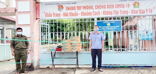 Đại diện Chi đoàn 789Winsko xyz đăng ký tỉnh trao quà tại khu cách ly tập trung thuộc xã Phú Tân.