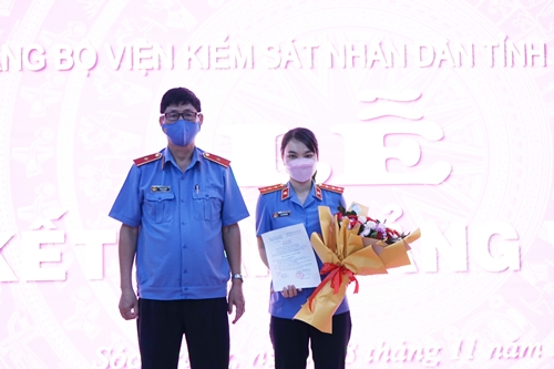 Đ/c Đinh Gia Hưng - Bí thư Đảng ủy, Viện trưởng 789Winsko xyz đăng ký tỉnh trao Quyết định kết nạp Đảng cho đ/c Lê Thị Bội Bội.