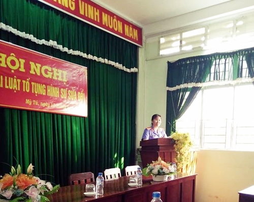 Đồng chí Trần Thị Liên - Trưởng phòng 2 triển khai văn bản 789win thành phố hồ chí minh mới tại Hội nghị do Liên ngành cơ quan tư pháp huyện Mỹ Tú tổ chức.