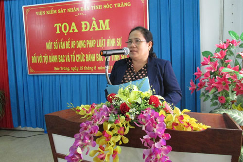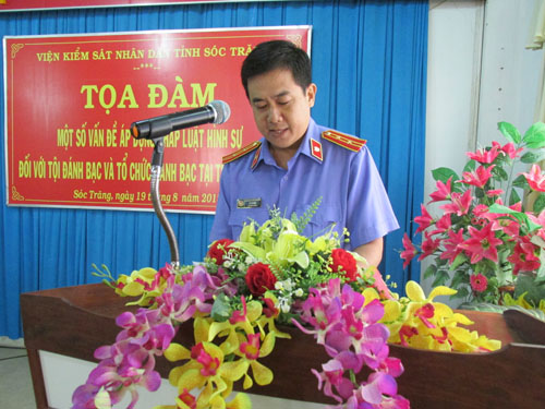 Đồng Chí Nguyễn Hồng Phuông, Phó viện trưởng Viện KSND tỉnh Sóc Trăng phát biểu khai mạc và gợi ý thảo luận