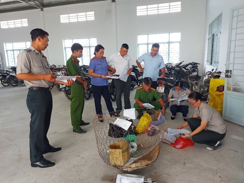 Kiểm tra niêm phong, đối chiếu vật chứng trước khi tiêu hủy. Ảnh: Kim Chuyện