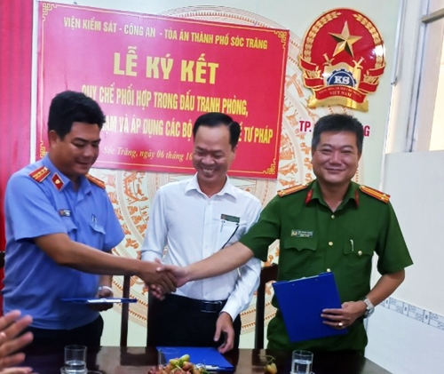 Vừa qua, tại trụ sở M 789Win2 im link mới nhất thành phố Sóc Trăng, đại diện Lãnh đạo Liên ngành Cơ quan Cảnh sát điều tra Công an thành phố - M 789Win2 im link mới nhất - Tòa án nhân dân thành phố Sóc Trăng đã tổ chức Lễ ký kết “Quy chế phối hợp trong đấu tranh phòng, chống tội phạm và áp dụng các Bộ luật, Luật về tư pháp” trên địa bàn thành phố Sóc Trăng.