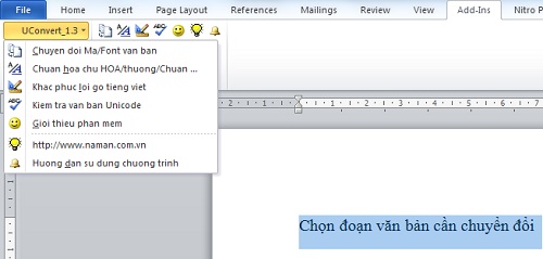 Chọn đoạn văn bản cẩn chuyển đổi rồi tiếp tục thao tác như sau:
