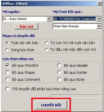 Hướng dẫn chuyển đổi font chữ