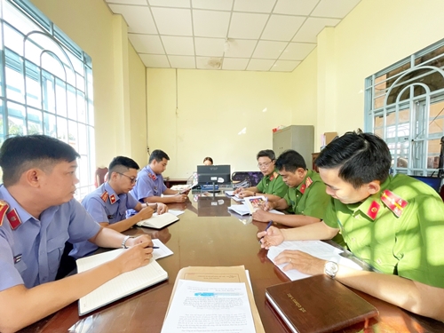 Viện KSND huyện Mỹ Xuyên phối hợp kiểm tra, hướng dẫn công an cấp xã trong tiếp nhận, xác minh sơ bộ nguồn tin về tội phạm