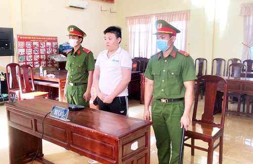 Bị cáo Nguyễn Thanh N tại điểm cầu thành phần (Công an huyện)