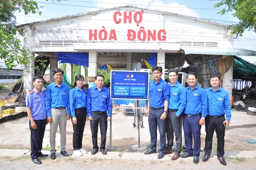 Bàn giao công trình thanh niên ‘lắp đặt các điểm truy cập internet cộng đồng miễn phí” chợ Hòa Đông. Ảnh: Nhựt