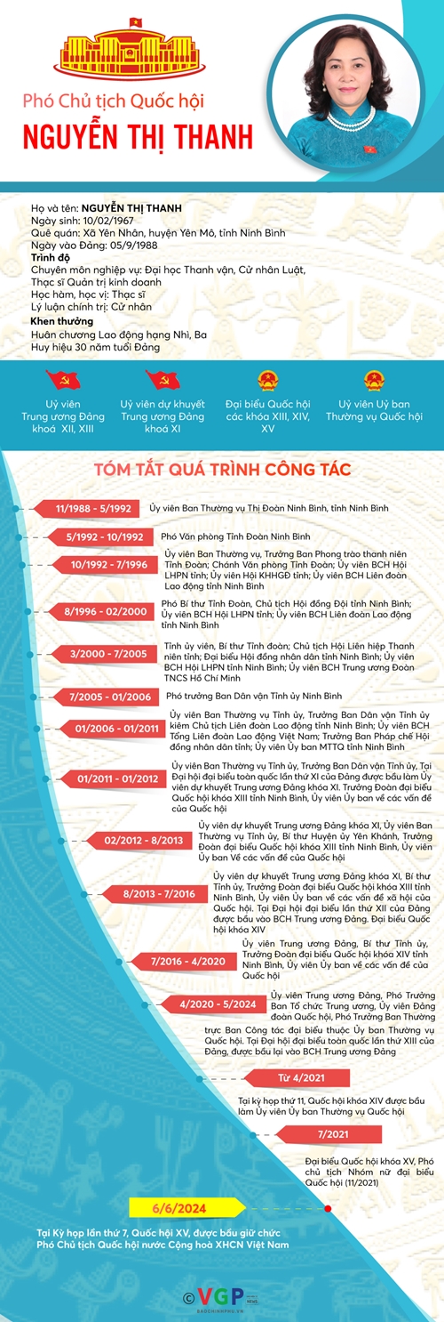 [INFOGRAPHICS] Tiểu sử Tân Phó Chủ tịch Quốc hội Nguyễn Thị Thanh