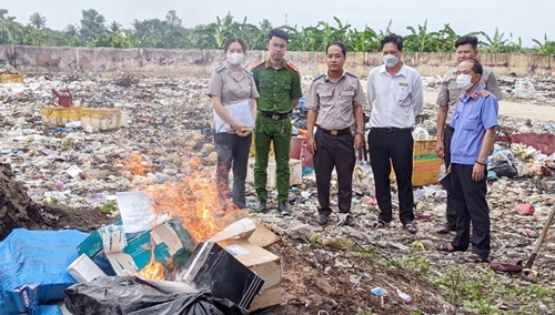 Vật chứng, tài sản tiêu hủy gồm: 39 vật chứng, tài sản trong 12 bản án hình sự. Các vật chứng, tài sản cần tiêu hủy được xuất kho, mở niêm phong kiểm tra lại số lượng, chủng loại, gồm: bao (gói) thuốc lá điếu nhập lậu, ma túy, ông thủy tin, bài tứ sắc, bài tây, bàn, ghế, cây dao, cây kéo, biển số xe, nón bảo hiểm, ổ khóa… đúng theo bản án và áp dụng biện pháp tiêu hủy phù hợp đúng quy định.