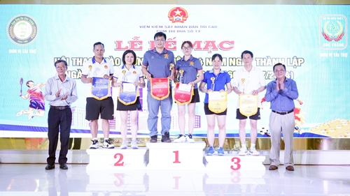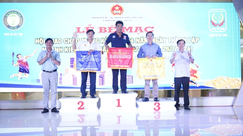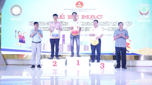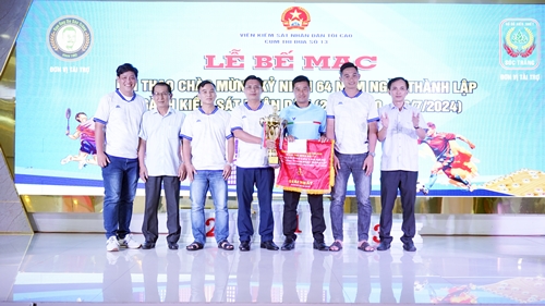 Trao giải cho các đội có thành tích cao môn cầu lông đôi nam