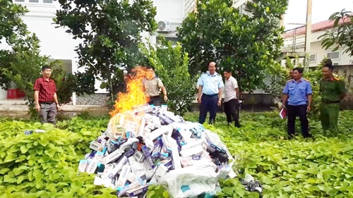 Vật chứng tiêu hủy là 6.500 bao thuốc lá điếu nhập lậu, gồm: 2.000 bao thuốc lá nhãn hiệu Jet, 4.500 bao thuốc lá nhãn hiệu Hero.