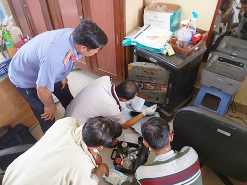Thu thập dấu vân tay trên két sắt bị cạy hư hỏng