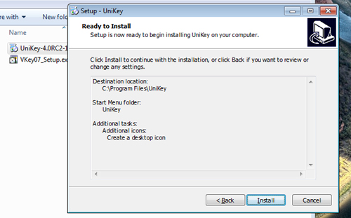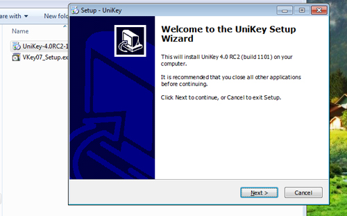 Sau khi tải về máy, các đ/c click đúp chuột trái vào file Unikey-4.0RC2-1101-Setup.exe để tiến hành cài đặt, quá trình cài đặt được thực hiện theo các bước như sau: