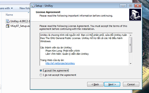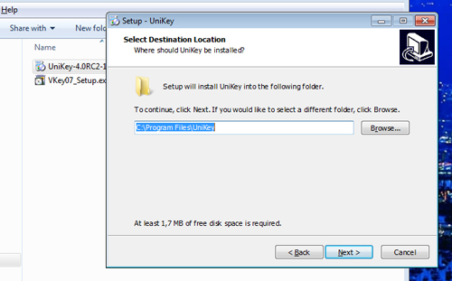 - Bước 1: Mở file cài đặt của Unikey