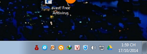 Sau khi cài đặt xong, phần mềm Unikey sẽ hiển thị biểu tượng trên desktop và biểu tượng chữ V trên thanh tasbar phía dưới góc phải màn hình như sau: