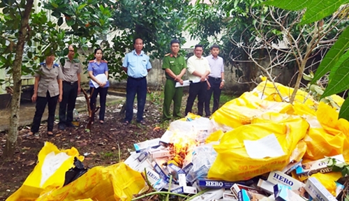 Vật chứng tiêu hủy là 17.980 bao thuốc lá điếu nhập lậu, gồm: 10.000 bao thuốc lá nhãn hiệu Jet, 5.980 bao thuốc lá nhãn hiệu Hero, 2.000bao thuốc lá nhãn hiệu Scott.
