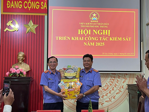 Sáng ngày 17/01/2025, Viện KSND thành phố Sóc Trăng tổ chức Hội nghị triển khai công tác năm 2025. Đồng chí Lê Nguyễn Trường Sơn, Ủy viên Ban Cán sự Đảng, Phó Viện trưởng phụ trách Viện KSND tỉnh Sóc Trăng dự và chỉ đạo hội nghị.
