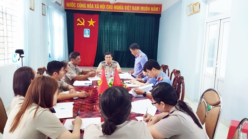 Làm việc với Đoàn có đồng chí Đinh Trường Minh - Chi cục trưởng Chi cục THADS huyện Châu Thành, cùng tập thể Lãnh đạo, Chấp hành viên, Thẩm tra viên và cán bộ Chi cục Thi hành án huyện.