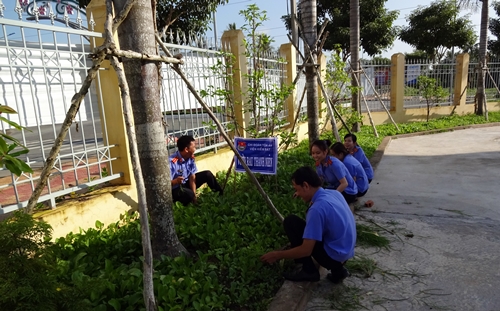 Đoàn viên Chi đoàn chăm sóc vườn rau thanh niên tại cơ quan