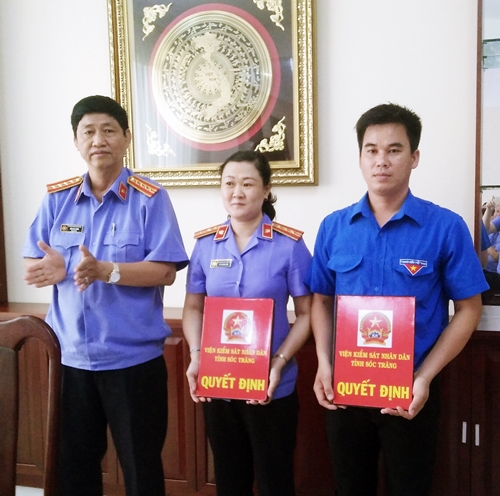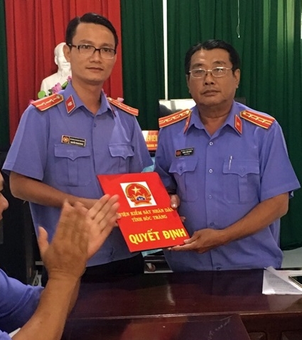 Đồng chí Đinh Gia Hưng – Viện trưởng và đồng chí Trầm Thiện Minh – Trưởng phòng tổ chức cán bộ trao quyết định điều động công chức thành lập Thanh tra 789Winsko xyz đăng ký tỉnh Sóc Trăng