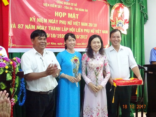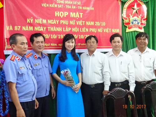 Hòa chung không khí phấn khởi, tự hào của phụ nữ cả nước chào mừng kỷ niệm 87 năm ngày thành lập Hội Liên hiệp phụ nữ Việt Nam (20/10/1930 - 20/10/2017), chiều ngày 19/10/2017 Công đoàn cơ sở liên ngành Viện Kiểm Sát, Tòa Án, Chi Cục Thi Hành Án Dân Sự thị xã Ngã Năm đã tổ chức Gặp mặt nữ cán bộ, công chức, người lao động nhân kỉ niệm ngày Phụ nữ Việt Nam 20/10.
