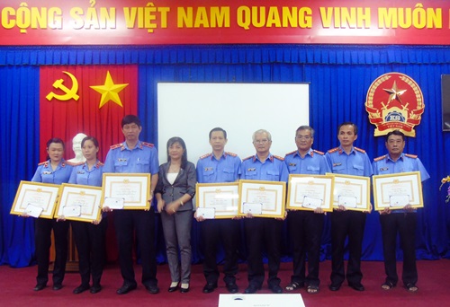 Đ/c Trần Thị Thanh Thủy trao giấy khen cho những đồng chí đã hoàn thành xuất sắc nhiệm vụ
