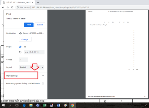 Bước 2: Ta thiết lập lại trang in. Ta chọn “More settings”