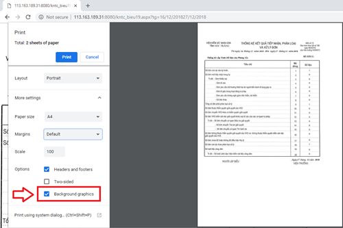 Bước 3: Ta chọn tùy chọn “Background graphics”
