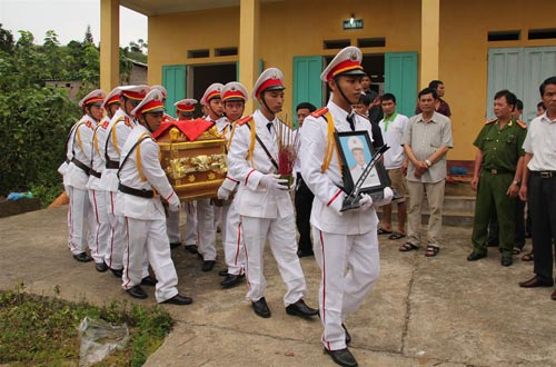 Đồng đội rước linh cữu thượng úy Lường Phát Chiêm, người đã anh dũng hy sinh