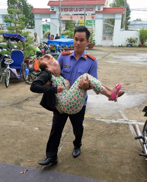 Đ/c Tạ Phương Thúy – Bí thư Đoàn Khối các cơ quan, cung nhà tài trợ trao quà cho các nạn nhân