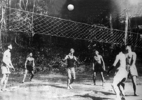 Bác Hồ chơi bóng chuyền với các chiến sĩ bảo vệ (Ảnh tư liệu)