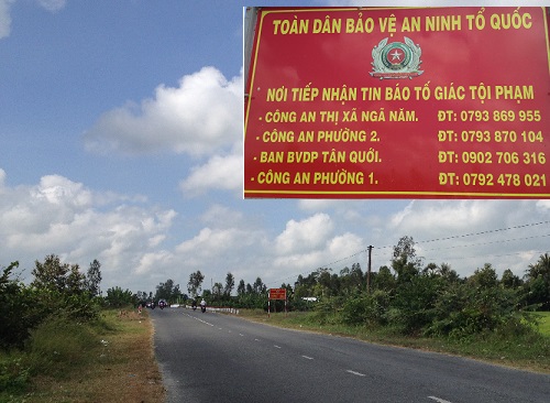 Thời gian gần đây, trên nhiều tuyền đường thuộc địa bàn thị xã Ngã Năm, tỉnh Sóc Trăng nhiều bảng “ Tiếp nhận tin báo, tố giác tội phạm” (sau đây gọi chung là bảng tiếp nhận) được lắp đặt dọc theo hai bên lề đường. Nội dung của các bảng tiếp nhận này là cung cấp số điện thoại của các cơ quan tiếp nhận tố giác, tin báo về tội phạm thuộc địa bàn và các khu vực lân cận. Với những thông tin đó người dân có thể nhanh chóng liên lạc được với các cơ quan chức năng khi có tội phạm xảy ra. Cụ thể tại một bảng tiếp nhận được đặt trên tuyến đường Quản lộ Phụng Hiệp thuộc địa bàn Phường 2, thị xã Ngã Năm có thể hiện số điện thoại của Công an Phường 1, Công an Phường 2, Công an thị xã Ngã Năm, Ban bảo vệ dân phố Tân Quới. (Ảnh bên dưới)