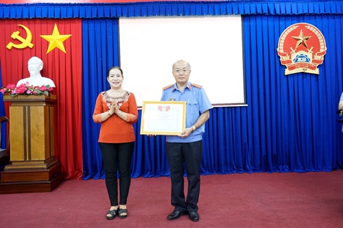 Hội luật gia Việt Nam tặng bằng khen cho đồng chí Trần Thanh Điệp (phải)