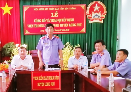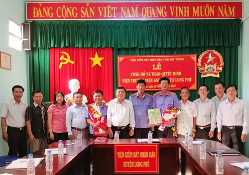Lúc 15 giờ ngày 28/02/2019 tại Hội trường Viện KSND huyện Long Phú tổ chức buổi lễ công bố và trao Quyết định Viện trưởng Viện KSND huyện Long Phú trong không khí trang nghiêm và long trọng.