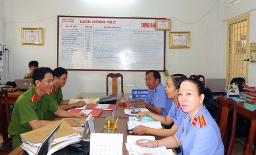 Liên ngành họp giải quyết tin báo tại Công an thị xã Vĩnh Châu