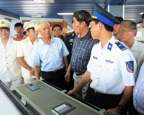 Cán bộ tàu CSB 8001 giới thiệu về con tàu với các đại biểu