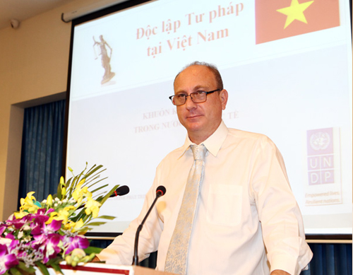 Ông Scott Ciment, Cố vấn chính sách pháp Luật của UNDP phát biểu tham luận