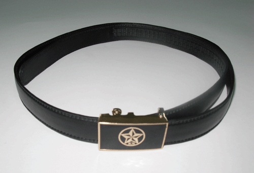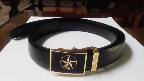 Khoá dây lưng gồm các chi tiết chính: Mặt khóa hình chữ nhật, kích thước 2,7 x 4,8 cm, hình ngôi sao năm cánh chìm giữa nền màu đen, xung quanh viền màu vàng, có chữ “KS” phía dưới ngôi sao. Đầu khóa cài dạng kim đầu tròn, răng dây lưng tăng giảm kích thước 1 x 19cm, cách đuôi dây 15cm, cân đối giữa dây và đầu khóa.