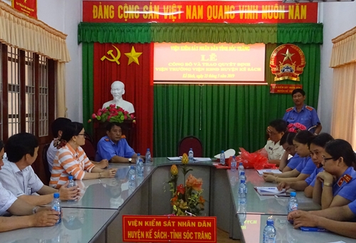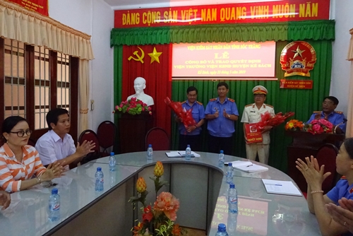 Đồng chí Đinh Gia Hưng, Bí thư BCS Đảng, Viện trưởng Viện KSND Sóc Trăng trao quyết định Viện trưởng 789Winsko xyz đăng ký huyện Kế Sách cho đồng chí Trần Minh Tiên