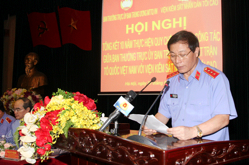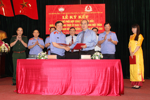 HỘI NGHỊ TỔNG KẾT 10 NĂM THỰC HIỆN QUY CHẾ PHỐI HỢP CÔNG TÁC VÀ LỄ KÝ QUY CHẾ PHỐI HỢP (SỬA ĐỔI) GIỮA BAN THƯỜNG TRỰC ỦY BAN TRUNG ƯƠNG MẶT TRẬN TỔ QUỐC VIỆT NAM VỚI VIỆN KIỂM SÁT NHÂN DÂN TỐI CAO