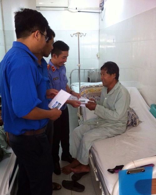 Đoàn viên tặng quà cho bệnh nhân nghèo