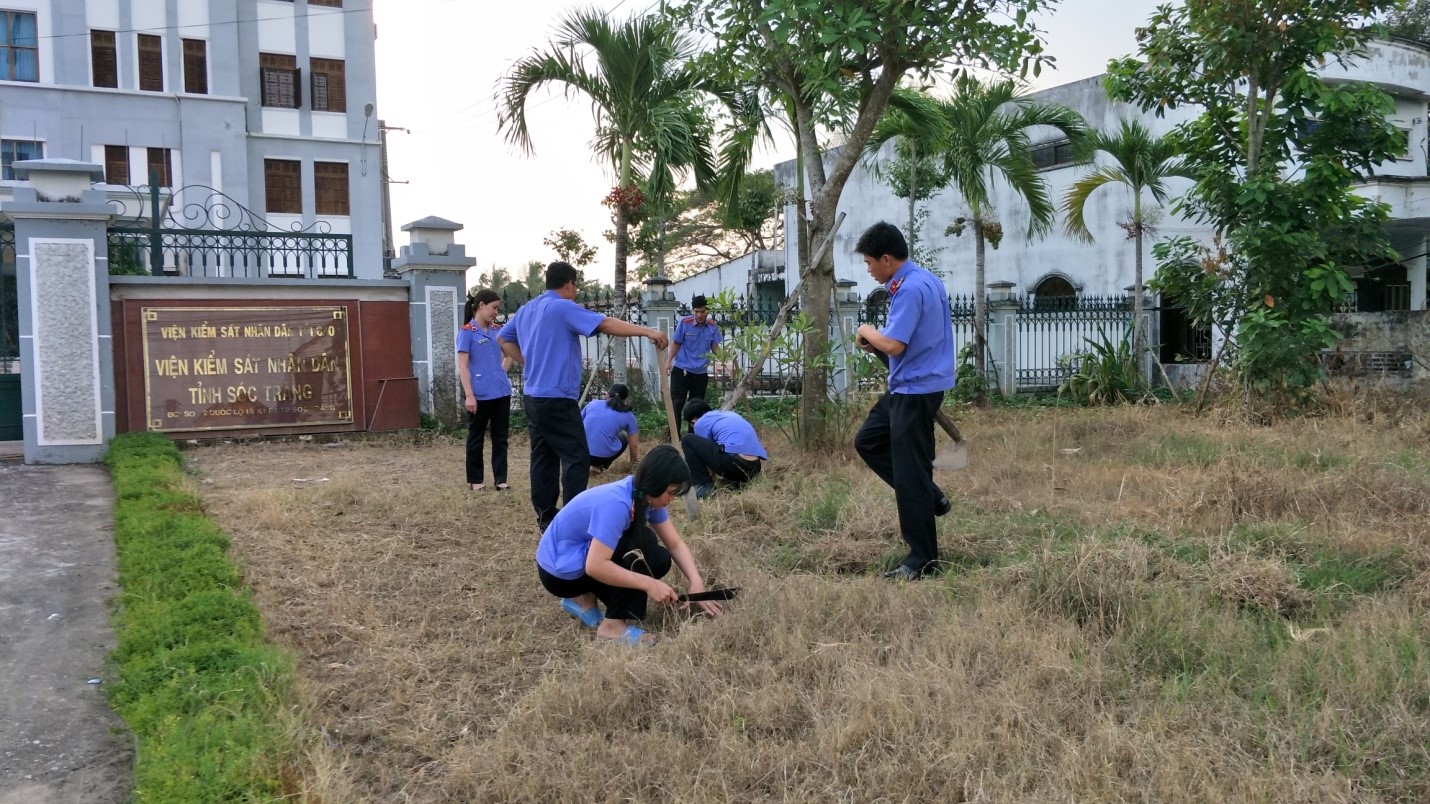 | Chiều ngày 04/01/2018 toàn thể Đoàn viên Chi đoàn tham gia vệ sinh định kỳ tuần 1/2018, với phần việc là làm cỏ phía trước cổng cơ quan. |